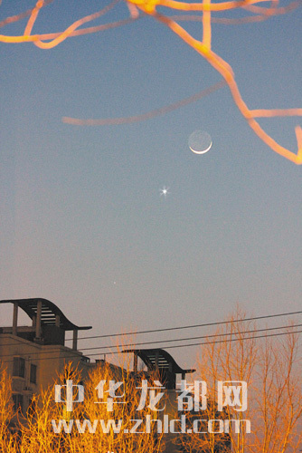 昨晚天宇上演 “金星合月”