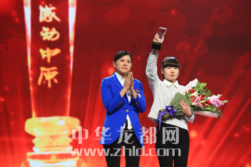 按照組委會(huì)安排,2009“感動(dòng)中原”年度人物、最美鄉(xiāng)村女校長(zhǎng)李靈為張偉頒發(fā)了獎(jiǎng)杯(張晗代領(lǐng))。