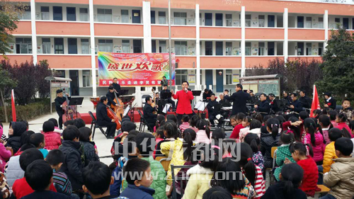 ????11月11日下午,周末公益劇場民族交響音樂進校園活動在許灣鄉(xiāng)李靈希望小學(xué)舉行, 周口民族管弦樂團的老師為該校600多名師生上了一節(jié)別開生面的音樂課,讓孩子們近距離感受到交響樂的魅力。晚報記者 王晨 攝