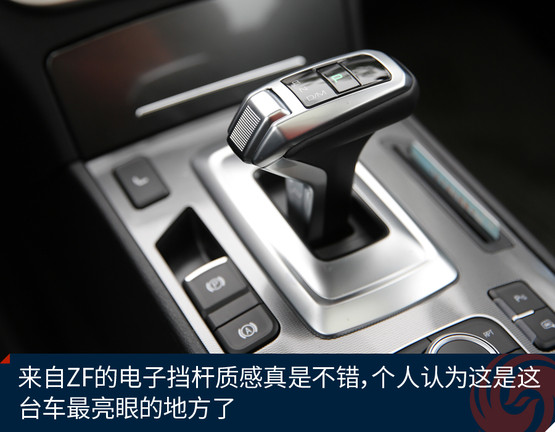 當(dāng)然,這些東西同級別中或許都能看到,不算稀奇,如果說這臺車與藍(lán)標(biāo)的最大區(qū)別,就得說儀表板中間的電子擋桿了,第一眼看到就被它的質(zhì)感吸引了,一點(diǎn)兒都不像在15萬這個級別中能看到的配置,與自家H2s一樣來自ZF的電子擋桿握感完美,操作方便,跟奧迪、寶馬等車的操作體驗(yàn)沒什么區(qū)別。