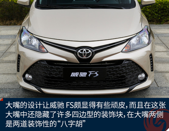 從外觀上我們也不難看出,威馳 FS與威馳一脈相承,正面看,甚至看不出兩車的差別,豐田最新的keen look設(shè)計讓車輛呈現(xiàn)出一種完全不同的年輕姿態(tài),當(dāng)然這也是目前豐田整個車系的主要設(shè)計語言,就是要讓車輛更顯年輕運動。大嘴的設(shè)計讓威馳 FS頗顯得有些頑皮,而且在這張大嘴中還隱藏了許多四邊型的裝飾塊,在大嘴兩側(cè)是兩道裝飾性的“八字胡”,除此之外是一雙大大的眼睛,這一副調(diào)皮可愛的模樣,相信不少年輕人都會喜歡。