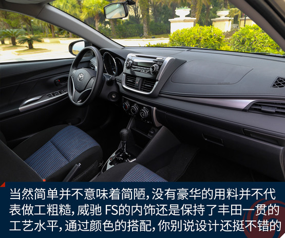 當(dāng)然簡單并不意味著簡陋,沒有豪華的用料并不代表做工粗糙,威馳 FS的內(nèi)飾還是保持了豐田一貫的工藝水平,并且通過黑色與銀色相互的搭配,你別說,這個內(nèi)飾的設(shè)計還挺不錯的。