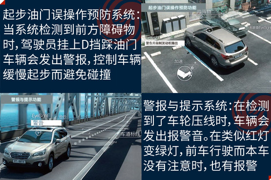 EyeSight駕駛輔助系統(tǒng)是避免事故發(fā)生,此次在中國(guó)市場(chǎng)亮相是它的第三代產(chǎn)品,其主要亮點(diǎn)是通過(guò)兩個(gè)模擬人眼的立體攝像頭,來(lái)監(jiān)控距離車(chē)輛前方100米以?xún)?nèi),高度在1米以上的人、車(chē)輛和物體,以減少傷害為目的的駕駛輔助系統(tǒng);除了距離以外,還可以對(duì)方向、高度大小等指標(biāo)進(jìn)行識(shí)別。它的主要功能分為四大類(lèi),分別是防碰撞制動(dòng)系統(tǒng)(PCB)、車(chē)速自適應(yīng)巡航控制系統(tǒng)(ACC)、起步油門(mén)誤操作預(yù)防系統(tǒng)和警報(bào)與提示系統(tǒng)。