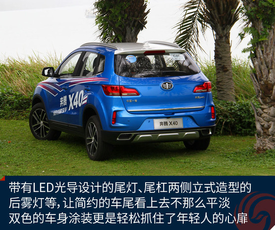 奔騰X40定位于一款小型SUV,雖然家族式的六邊形格柵線條依然有點生硬,但頗具馬自達神韻的大燈、帶有京劇臉譜線條的前臉、時尚前衛(wèi)的雙色車身等,都讓它向目前大家更看重的顏值路線更近一步。能在第一眼抓住年輕人的心,這款車就成功了一半。