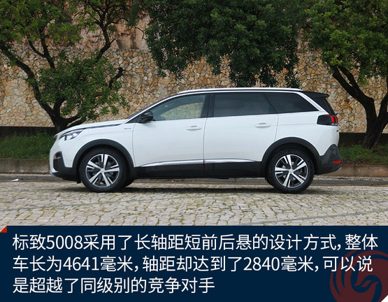 和市面上的一些7座SUV不同,標(biāo)致5008采用了長(zhǎng)軸距短前后懸的設(shè)計(jì)方式,這樣的設(shè)計(jì)更多的出現(xiàn)在運(yùn)動(dòng)派車型上。標(biāo)致5008的整體車長(zhǎng)為4641毫米,軸距卻達(dá)到了2840毫米,可以說是超越了同級(jí)別的競(jìng)爭(zhēng)對(duì)手。
