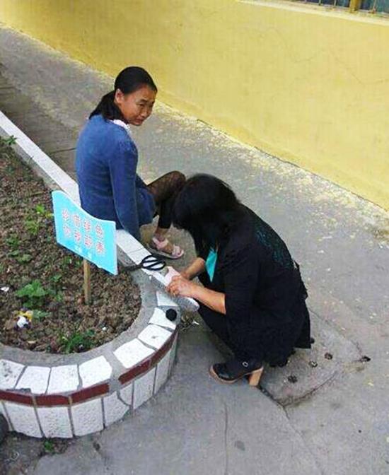 ????近兩天,微信朋友圈流傳一組照片:一位身著黑衣的女子蹲在花壇邊,低頭縫補(bǔ)一只粉色涼鞋(如圖)。旁邊坐著一個(gè)小女孩,背過身去拭淚。圖片配文:補(bǔ)鞋的老師像媽媽。這感人一幕發(fā)生在5月21日項(xiàng)城市昌福學(xué)校,該校學(xué)生大部分是留守兒童,補(bǔ)鞋的女子是該校的郭雪梅老師。這件事經(jīng)河南日?qǐng)?bào)客戶端和河南日?qǐng)?bào)官方微博發(fā)布后,在網(wǎng)上引起強(qiáng)烈反響,很多網(wǎng)友表示,這組圖片戳中了心中最柔軟的那一塊。
