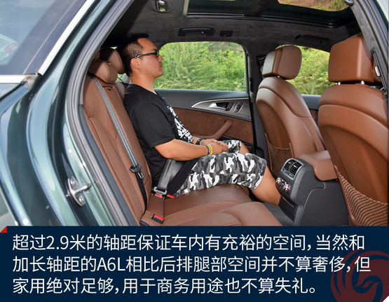 ????????作為中大型豪華車衍生的旅行轎車,A6 Avant提供了充足的乘坐空間,當(dāng)然后排不會(huì)像加長軸距的A6L那么奢侈,不過作為商務(wù)接待并不嫌失禮。身高180cm的人在后排足夠舒適,加上旅行車車頂輪廓高挑,后排乘客頭部空間還優(yōu)于三廂轎車。