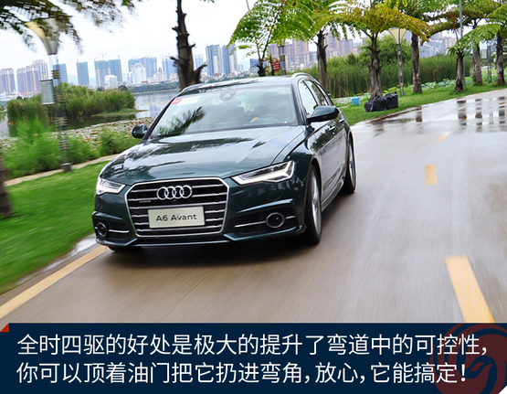 ????????作為原裝進(jìn)口車,奧迪A6 Avant的底盤懸掛設(shè)定不像國產(chǎn)奧迪A6L那種偏向關(guān)照后排的VIP,再加上標(biāo)配運(yùn)動(dòng)型懸掛縮減了懸掛行程,A6 Avant旅行車開起來明顯比A6L來的犀利和動(dòng)感,我并不是說它像RS 6 Avant那樣有種讓人上癮而無法自拔的“毒力”,但作為一臺(tái)有著濃郁個(gè)人主義色彩又需要兼顧全家使用的車型,奧迪A6 Avant是那種該穩(wěn)就穩(wěn),要快也能快的理想設(shè)定。