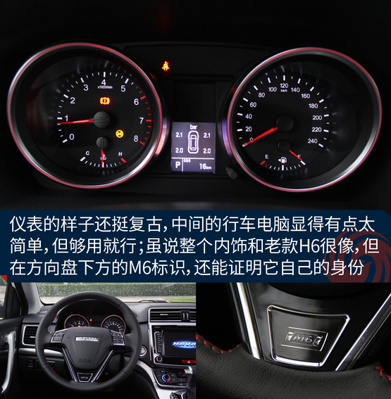 ????????車(chē)上的機(jī)械液壓助力轉(zhuǎn)向的力度有點(diǎn)沉,這點(diǎn)和老款H6特別的相似,長(zhǎng)時(shí)間在低速行駛或者移庫(kù)挪車(chē)的時(shí)候挺廢胳膊,大老爺們長(zhǎng)時(shí)間開(kāi)都覺(jué)得酸,更何況瘦小的小女孩呢!所以從這點(diǎn)看出,M6會(huì)從配置以及更低的價(jià)格來(lái)吸引消費(fèi)者,至于想這些其他的問(wèn)題,大伙就別太吹毛求疵了,畢竟魚(yú)和熊掌不可兼得。