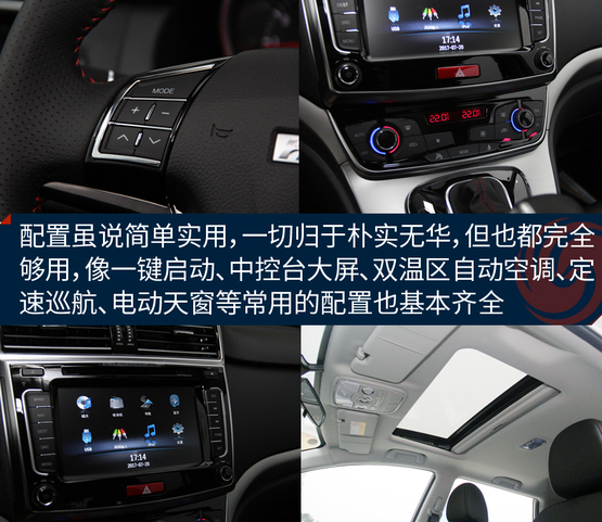 ????????內(nèi)飾相對(duì)的看著沒(méi)那么大的驚喜,主要是它與老款哈弗H6車(chē)型的樣子基本保持一致,包括橫向空調(diào)出風(fēng)口、大尺寸中控屏幕以及換擋桿造型。配置方面,該車(chē)配備了多功能真皮方向盤(pán)、防夾電動(dòng)天窗、一鍵啟動(dòng)、雙溫區(qū)自動(dòng)恒溫空調(diào)、自動(dòng)雨刷、自動(dòng)大燈、主駕駛電動(dòng)座椅等實(shí)用裝備,對(duì)于不到10萬(wàn)的家用車(chē)來(lái)說(shuō)太夠用了,沒(méi)必要再弄那些花里胡哨的東西,比單純?yōu)榱俗非筻孱^和性價(jià)比要好,總結(jié)一句話就是:一切簡(jiǎn)單就好!