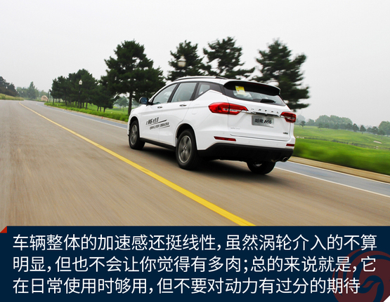 ????????M6使用的是前麥弗遜式+后雙橫臂式懸架,行程較長(zhǎng),調(diào)校也偏舒適,正常速度過(guò)彎兒的話,側(cè)傾并不會(huì)影響到舒適性。過(guò)彎處的側(cè)向傾斜度在可以接受的范圍之內(nèi),轉(zhuǎn)彎也比較的平順。