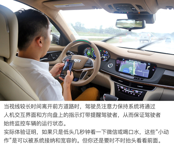 ????????有趣的是,在超級巡航模式下,駕駛者短暫的“走神”反而比自己駕駛汽車時“走神”更有安全感。你可能會將這一功勞歸于先進(jìn)的駕駛輔助技術(shù),其實(shí)這種安心是因?yàn)橄到y(tǒng)強(qiáng)迫你隨時知悉汽車的運(yùn)行狀態(tài)。而如果沒有系統(tǒng)監(jiān)控,駕駛員走神的時間就變得極為不可控。