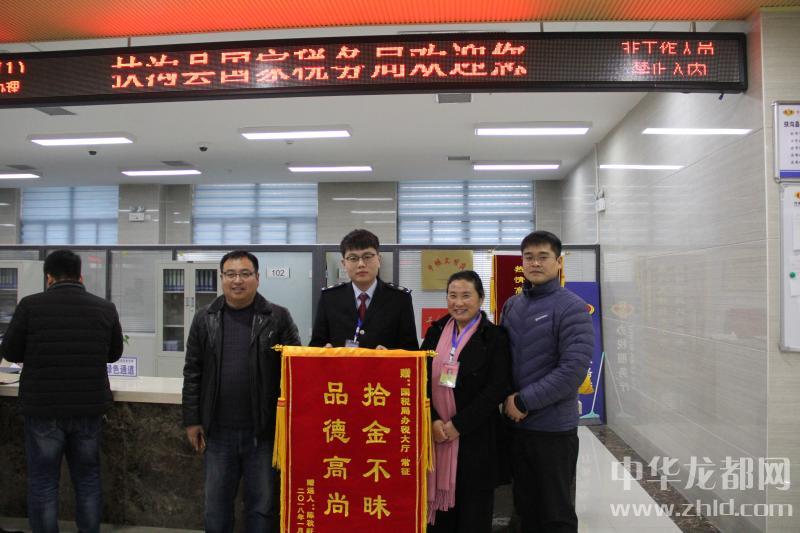 中華龍都網(wǎng)訊(周口報(bào)業(yè)全媒體記者 謝永靜)1月22日剛剛上班,陳秋旺和同事手拿“拾金不昧品德高尚”的錦旗來(lái)到扶溝縣國(guó)稅局辦稅服務(wù)廳,專程向拾金不昧的工作人員常征致謝。