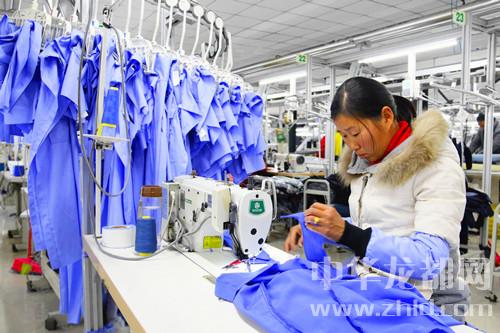 項(xiàng)城市產(chǎn)業(yè)集聚區(qū)莊吉服飾生產(chǎn)車間內(nèi),工人們正在趕制訂單服裝(如圖)。據(jù)了解,該企業(yè)由中國莊吉集團(tuán)上海服裝有限公司投資興建,總投資5億元,年上繳稅金1500萬元,吸納就業(yè)3000人,每月生產(chǎn)服裝85萬件,產(chǎn)品出口歐美、非洲等地區(qū)。該企業(yè)還通過開辦紡織服裝技能學(xué)校,對(duì)500余戶貧困家庭(殘疾人家庭等)進(jìn)行免費(fèi)培訓(xùn),切實(shí)解決了貧困家庭就業(yè)問題。王潔石 攝