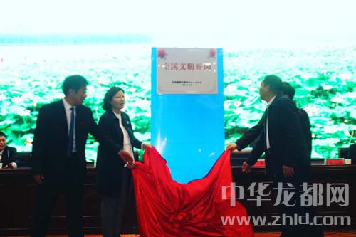 中華龍都網(wǎng)訊 (周口報(bào)業(yè)全媒體記者 侯俊豫 通訊員 孫琳琳)4月24日,是淮陽(yáng)中學(xué)廣大師生難忘的日子。在學(xué)校報(bào)告廳召開(kāi)的創(chuàng)建全國(guó)文明校園總結(jié)表彰大會(huì)上,市文明辦副主任劉成華,縣委常委、宣傳部長(zhǎng)謝留定,副縣長(zhǎng)薛燕和校長(zhǎng)高遠(yuǎn)征共同為該校成功創(chuàng)建“全國(guó)文明校園”揭牌。該校是我市首個(gè)獲此殊榮的學(xué)校。