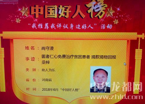 6月29日,記者從太康縣文明辦獲悉,太康縣常營鎮(zhèn)沙莊村尚守凌醫(yī)者仁心,20年累計捐款捐物數(shù)500余萬元回報桑梓,光榮入選6月份助人為樂類中國好人榜。目前,該縣入選中國好人榜人數(shù)已達(dá)38人。