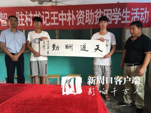 扶貧先扶智,為弘揚(yáng)“扶貧濟(jì)困,崇德向善”的傳統(tǒng)美德,使貧困學(xué)生順利完成學(xué)業(yè),實(shí)現(xiàn)自己的理想,王忠樸主動(dòng)與虎崗鄉(xiāng)中心校聯(lián)系,為14名考上鄲城一高的貧困學(xué)生每人資助500元現(xiàn)金和一幅自己親自為受資助的14名貧困學(xué)子親筆題字,激勵(lì)他們奮發(fā)向上,早日成才。