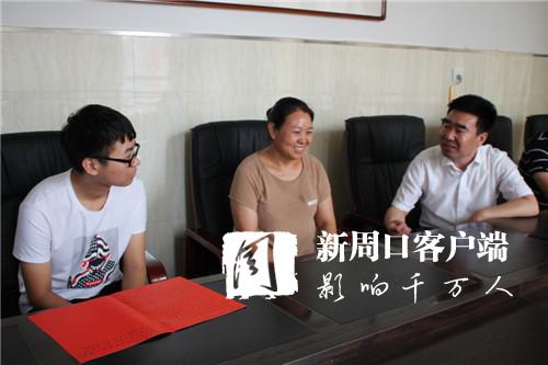 8月13日,鄲城縣宜路鎮(zhèn)朱莊村貧困大學(xué)生王浩,趁暑假期間帶母親到鄲城縣婦幼保健院體檢身體,并帶著手寫的一封感謝信,感恩一直以來鄲城縣婦幼保健院對他的學(xué)費(fèi)資助和對家庭的幫助。當(dāng)日,該院院長亢國良將2018年下半年的6000元學(xué)費(fèi)、生活費(fèi)交到了王浩手中,王浩和母親恩不已。