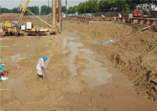 當日16時許,記者在順和家園施工現(xiàn)場看到,由于近幾天連降暴雨,基坑內(nèi)積水嚴重,目前,施工方投入井點降水水泵70臺,基坑內(nèi)抽水污水泵20臺正在進行基坑抽水,為及時復工創(chuàng)造條件。
