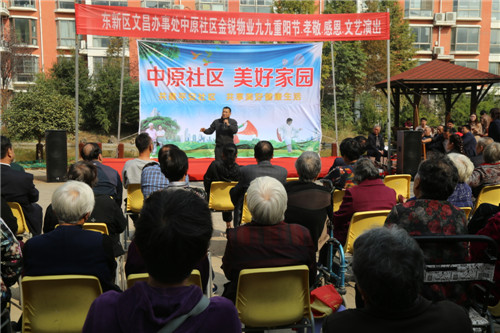 金秋十月,菊花飄香。10月17日重陽(yáng)節(jié)當(dāng)天,東新區(qū)中原社區(qū)攜同金銳物業(yè)在該社區(qū)組織開(kāi)展了“擁抱新時(shí)代 歡度重陽(yáng)節(jié)”文藝演出活動(dòng)。東新區(qū)社會(huì)事務(wù)局局長(zhǎng)朱放哲,房屋征收中心主任閆國(guó)政,文昌辦事處主任李向峰,國(guó)庫(kù)支付中心副主任科員齊孟磊,文昌中學(xué)副校長(zhǎng)康瑞玲參加活動(dòng)。