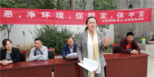 10月21日上午,商水縣法院駐城關(guān)鄉(xiāng)柴堂村工作隊、縣司法局和河南明辯律師事務(wù)所到基層集中開展掃黑除惡法律宣傳和咨詢活動。