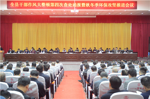 10月26日,鹿邑縣干部作風(fēng)大整頓第四次查處通報(bào)暨秋冬季環(huán)保攻堅(jiān)推進(jìn)會(huì)議在縣委黨校一樓報(bào)告廳召開。會(huì)議通報(bào)近期全縣干部作風(fēng)大整頓查處典型案例、安排部署秋冬季環(huán)保攻堅(jiān)工作??h委書記梁建松出席會(huì)議并講話??h委副書記付吉廣主持會(huì)議,并就貫徹落實(shí)會(huì)議精神提出具體要求??h領(lǐng)導(dǎo)李國際、雷申、陸志杰、韓林、張麗娟、宋濤、侯自峰、閆家明、武衛(wèi)東等出席會(huì)議。