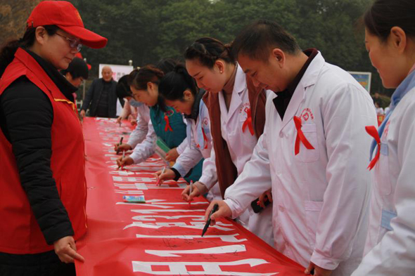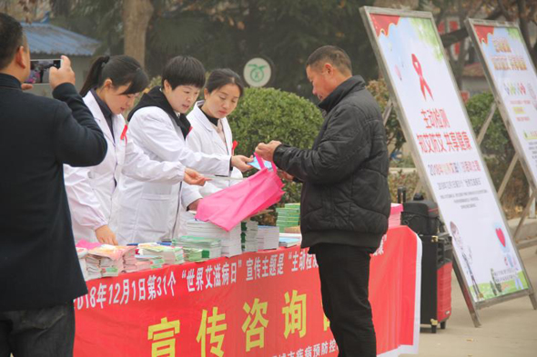 11月30日上午,由項(xiàng)城市衛(wèi)生計(jì)生委組織,來(lái)自項(xiàng)城市疾控中心、市第一人民醫(yī)院、市中醫(yī)院、市婦幼保健院及市內(nèi)的其它十余家醫(yī)療機(jī)構(gòu),共同在該市人民公園舉行第31個(gè)“主動(dòng)檢測(cè),知艾防艾,共享健康”的“世界艾滋病日”主題宣傳活動(dòng)。活動(dòng)現(xiàn)場(chǎng),醫(yī)護(hù)人員共向群眾發(fā)放宣傳資料1800余冊(cè)(種),接受230多人次的咨詢(xún)服務(wù),大力宣傳倡導(dǎo)建立文明健康的生活方式,并希望大家都能正視艾滋、關(guān)注艾滋、預(yù)防艾滋。