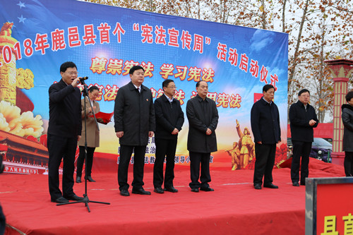 今年12月4日是第五個國家憲法日,也是我國第一個“憲法宣傳周”。當天一大早,鹿邑縣在紫氣大道西段老君新苑法治文化主題公園舉行集中宣傳活動??h領導梁建松、李國際、雷申、侯自峰、武衛(wèi)東、王曉征等出席活動啟動儀式,縣法院、檢察院主要負責人和來自全縣縣直各局委、鄉(xiāng)鎮(zhèn)的300余名干部群眾代表參加啟動儀式。