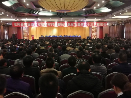 12月18日下午,淮陽縣貧困退出市級初審問題整改暨脫貧攻堅第三十三次推進會召開,通報貧困縣退出市級初審反饋問題,對相關(guān)責(zé)任單位和人員進行問責(zé),安排部署市級初審反饋問題整改和迎接國家2018年度脫貧工作成效考核工作。