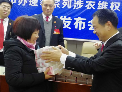 “感謝項(xiàng)城法院的領(lǐng)導(dǎo),他們一心為民,克服種種困難,幫助我們要回了血汗錢。”12月24日,項(xiàng)城法院拖欠農(nóng)民工工資案件集中辦理等系列涉農(nóng)維權(quán)活動新聞發(fā)布會在該院召開,16名涉農(nóng)維權(quán)案件當(dāng)事人從項(xiàng)城法院黨組成員、院長張永波的手中接過索要許久的血汗錢,喜極而泣。
