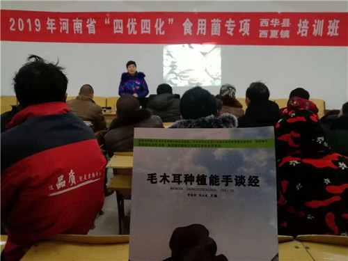 會(huì)議邀請(qǐng)河南省食用菌產(chǎn)業(yè)技術(shù)體系周口試驗(yàn)站黃桃閣、聞亞美、丁亞通等專家進(jìn)行授課。培訓(xùn)活動(dòng)以大眾典型食用菌品種——毛木耳為主題,分別從種植的主要原料,發(fā)酵料種植毛木耳的關(guān)鍵因素以及毛木耳高產(chǎn)、優(yōu)質(zhì)的關(guān)鍵技術(shù)、栽培技術(shù)等三個(gè)方面,圖文并茂,內(nèi)容詳實(shí)向與會(huì)群眾進(jìn)行講解傳授。