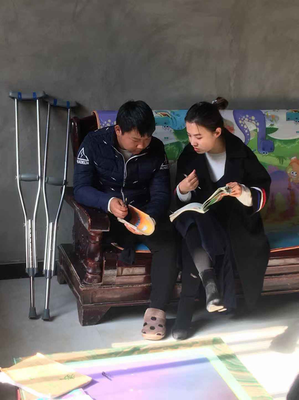 陳陽買來學習資料和字帖,劉璐璐買來練習題,讓丁振偉學習。