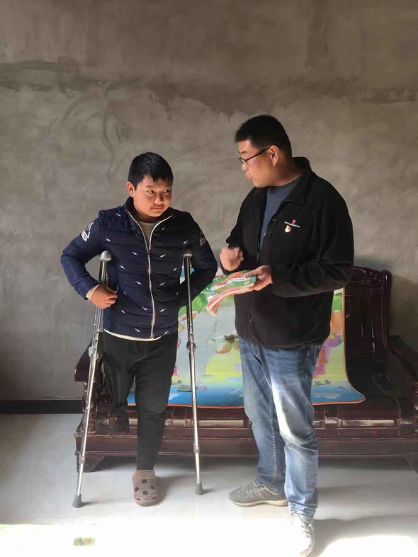 2018年10月4日,李霄在北丁莊村走訪,發(fā)現(xiàn)丁振偉輟學在家。原來,丁振偉在縣城一所民辦學校讀書,成績優(yōu)異,七年級時患病,四處求醫(yī)一年多,最終右腿高位截肢才保住性命,一直在家休養(yǎng)。