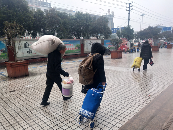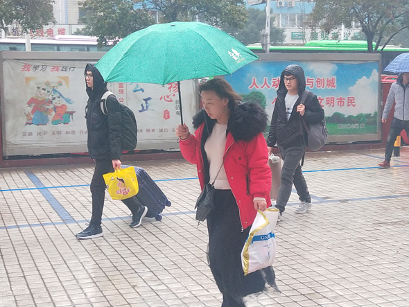 1月30日,農(nóng)歷臘月二十五,上午下起了大雨,在周口汽車(chē)客運(yùn)總站,一些從外地返鄉(xiāng)的乘客加快了回家過(guò)年的步伐。