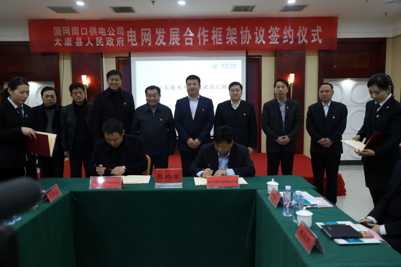 2月13日,太康縣人民政府與周口市供電公司舉行電網(wǎng)發(fā)展合作框架協(xié)議簽約儀式。周口市供電公司總經(jīng)理郭雷、副總經(jīng)理靳玉林,紀委書記、工會主席張浩,太康縣領(lǐng)導王國璽、董鴻、喬偉等出席簽約儀式。縣委常委、縣委辦公室主任董鴻主持簽約儀式。