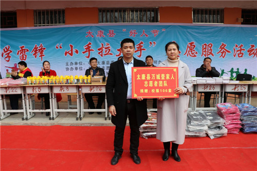 精彩的武術(shù),漂亮的書包、校服……3月3日,太康縣王集鄉(xiāng)新店鋪小學(xué)106名學(xué)生每人收到了一份“大禮包”。當(dāng)日,太康縣委宣傳部和縣文明辦在新店鋪村舉辦太康縣“好人節(jié)”暨學(xué)雷鋒“小手拉大手”志愿服務(wù)活動,30多名志愿者為學(xué)生們發(fā)放了書包、文具和校服等,并深入貧困戶家中幫助打掃庭院衛(wèi)生,受到村民的一致好評。