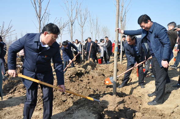 開工儀式結(jié)束后,與會領(lǐng)導(dǎo)在森林公園項目所在地參加植樹造林活動,為森林公園植上第一片新綠。