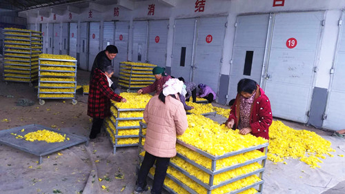 “我們提供優(yōu)質(zhì)種苗給種植戶,并且提供免費的技術(shù)指導(dǎo)以及技術(shù)培訓(xùn),群眾在種植金絲皇菊的過程中遇見問題都可以隨時來咨詢;在金絲皇菊成熟后我們會對老百姓所種植的菊花進(jìn)行保底收購,保證種植戶的利潤不受影響?!睋?jù)了解,目前僅張辛行政村就有菊花種植合作社3個,種植金絲皇菊、雪菊、貢菊等各類菊花近千畝,帶動全村貧困人員由原來的303戶、998人下降至現(xiàn)在的7戶、18人,全村人靠種植菊花實現(xiàn)創(chuàng)收致富。