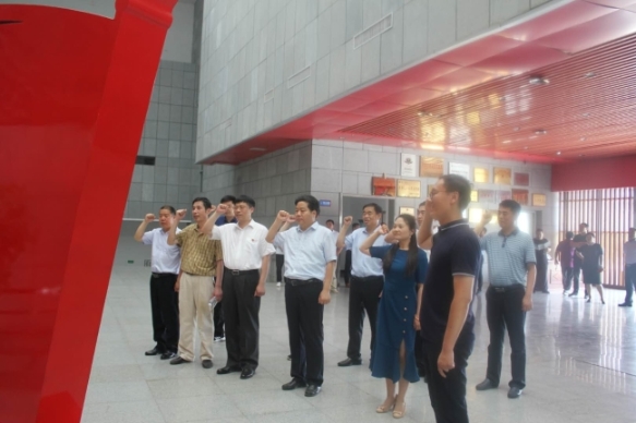 在扶溝縣委常委、統(tǒng)戰(zhàn)部長(zhǎng)曹來(lái)凌,副縣長(zhǎng)史凱歌等的陪同下,李飛一行首先參觀了吉鴻昌將軍紀(jì)念館,并在館內(nèi)舉行莊嚴(yán)的重溫入黨宣誓儀式,接受愛(ài)國(guó)主義教育和革命精神洗禮。