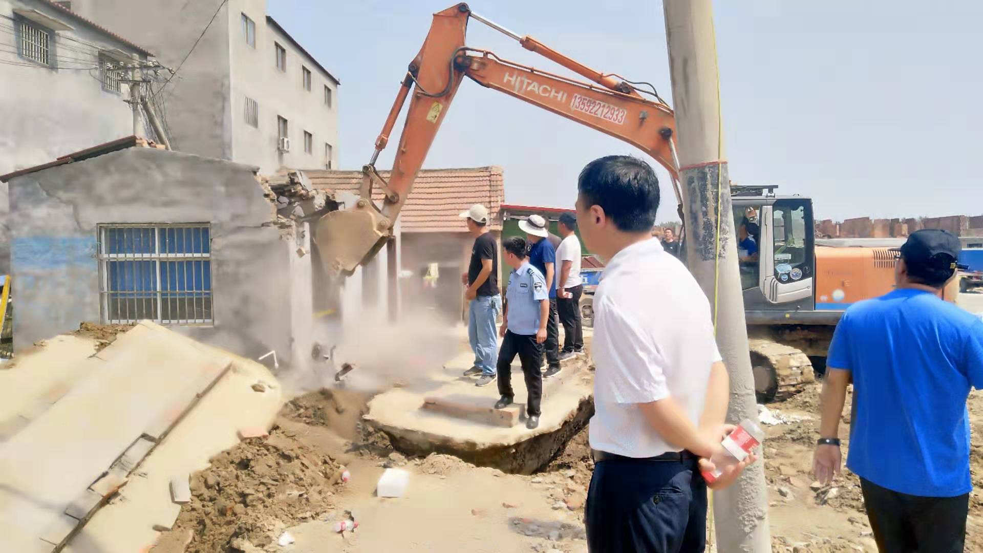 行動中,大王莊鄉(xiāng)黨委、政府組織鄉(xiāng)政府干部、協(xié)調(diào)縣環(huán)保局執(zhí)法隊、縣土地局執(zhí)法隊、鄉(xiāng)派出所、鄉(xiāng)供電所80余人、出動大型挖掘機,對全鄉(xiāng)境內(nèi)小散亂污企業(yè)(沙石料場、剝皮板廠、預制板廠、廢品收購站、停車場、路邊停車加水點)進行整治、取締。