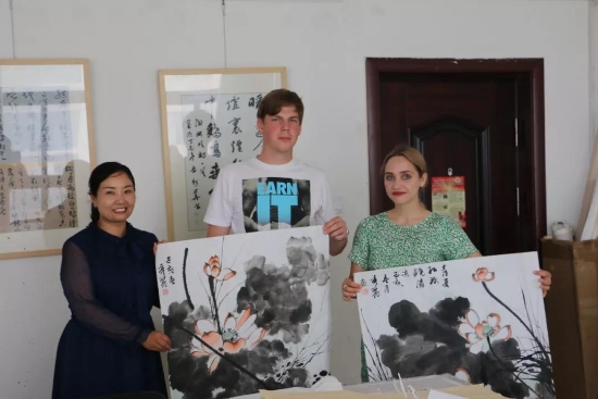 鹿邑本土畫家劉龍飛畫的花鳥栩栩如生引起俄羅斯青年畫家們的嘖嘖稱嘆。兩位青年畫家通過翻譯告訴記者,中國畫歷史悠久、博大精深,看到兩位老師的畫作形神兼?zhèn)?,氣韻生動,真是不虛此行,感謝贈送的佳作,他們一定珍藏。據(jù)悉,本次活動他們將以國際藝術(shù)志愿者的身份、以西方人的視角描繪老子故里的美景,他們走進明道宮、太清宮等景點實地寫生,并走美術(shù)學(xué)校為孩子們輔導(dǎo)繪畫并帶來世界名校的繪畫理念。