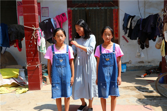 這次來看望“女兒”,王冬特意給小姐妹倆購買了幾件新衣服、鞋和一些書籍。穿上新衣服和鞋子,姊妹倆高興得手舞足蹈?!巴趵蠋?,你待她們給親閨女一樣,每次來都不忘給她們買東西。我們真不知道向你說啥好了。”看著倆孫女被王冬打扮的如此美麗好看,王肖晴的爺爺王客臣感動得連連向王冬道謝。