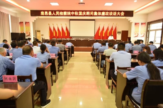 中秋節(jié)、國(guó)慶節(jié)即將來(lái)臨,為加強(qiáng)節(jié)日期間黨風(fēng)廉政建設(shè),以實(shí)際行動(dòng)展現(xiàn)檢察隊(duì)伍遵規(guī)守紀(jì)的過(guò)硬作風(fēng),9月 9日,鹿邑縣人民檢察院召開(kāi)中秋、國(guó)慶“雙節(jié)”期間集體廉政談話(huà)大會(huì)。