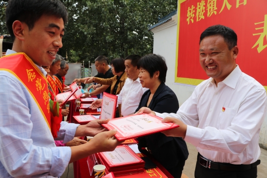 面對群眾的熱情,鎮(zhèn)黨委政府后續(xù)工作也積極跟上,購買獎品、證書,對各村評選出的“十星”農戶進行及時表彰和獎勵?!爱斏稀恰婀鈽s。舉辦這樣的活動群眾喜歡,真是辦到了我們村民心坎里了?!闭f起村里在國慶節(jié)日期間舉辦‘十星’農戶評選一事,轉樓鎮(zhèn)轉樓村村民張富國動情地說。