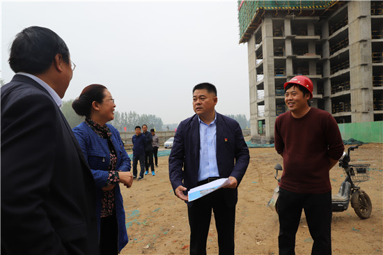 在未來家園四期項(xiàng)目建設(shè)工地,孫紅偉一行詳細(xì)聽取了施工單位負(fù)責(zé)人對項(xiàng)目施工現(xiàn)場情況的介紹,針對項(xiàng)目工地現(xiàn)場施工安全、環(huán)保要求,衛(wèi)生環(huán)境治理、項(xiàng)目觀摩展板設(shè)計、擺放等問題,孫紅偉現(xiàn)場提出意見和要求。