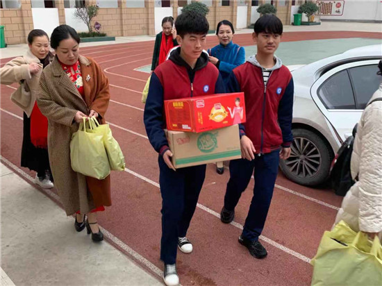 “你們真是太好了,感謝你們?yōu)楹⒆觽兯蛠淼拿抟潞兔姘!?1月23日,項城市特殊教育學(xué)校校長李寧握住志愿者郭英的手激動地說。