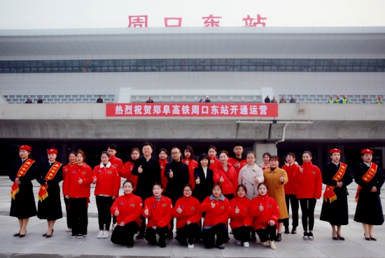 為慶祝鄭阜高鐵首發(fā),同時給乘客營造一個溫馨舒適的乘車環(huán)境,提升城市溫度,12月1日,在團市委的組織下,來自周口職業(yè)技術(shù)學院的80名青年志愿者聚集在周口東站,開展志愿服務活動。記者在現(xiàn)場看到,志愿者身穿統(tǒng)一服裝,分布在站前廣場、售票廳、進站口、候車廳的各個角落,他們有的幫助乘客取票;有的引導乘客,幫助乘客進站;有的則幫助車站工作人員分散客流量等。志愿者們積極熱情的工作態(tài)度,得到了廣大乘客的好評。