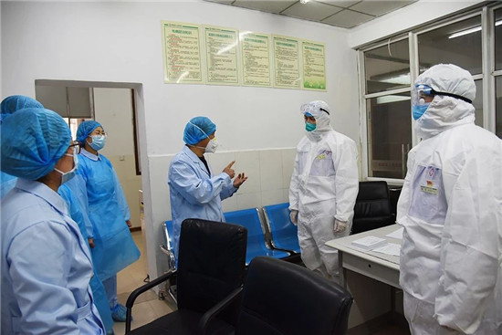 1月27日上午,鄲城縣人民醫(yī)院院長(zhǎng)于健、書(shū)記高飛身著隔離服深入到發(fā)熱門(mén)診隔離區(qū)、感染科隔離病房及診室,安排部署防控工作,指出:按照控感工作要求,為防止交叉感染,從即日起,發(fā)熱門(mén)診、感染科病房、CT室、放射科、檢驗(yàn)科等防疫一線工作人員,24小時(shí)工作在一線,直到疫情結(jié)束。