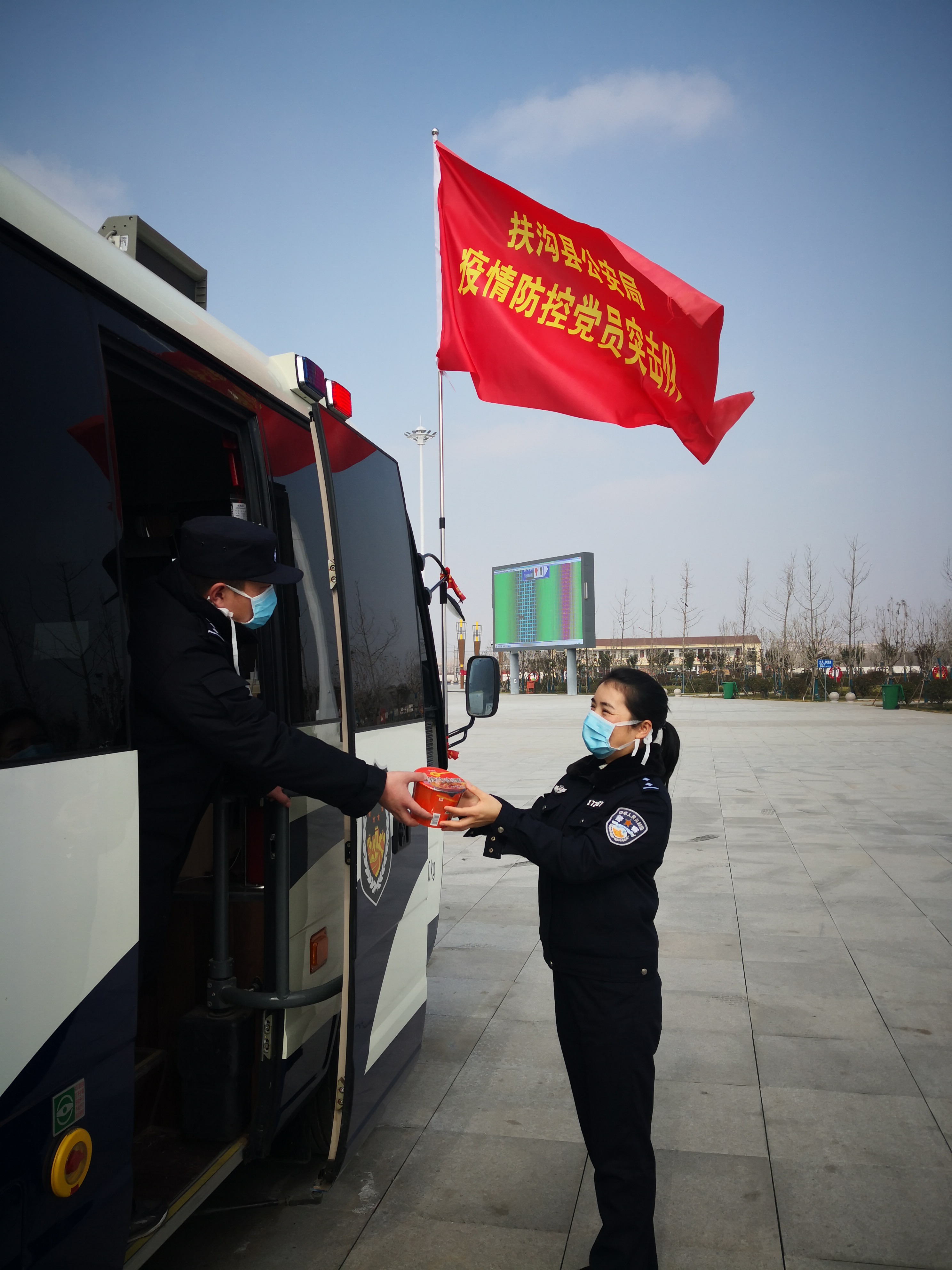 2020年的春節(jié)非比尋常,新冠病毒疫情在中華大地肆虐橫行,扶溝縣公安局黨委審時(shí)度勢,號召全體民警全員上崗,眾志成城,抗擊疫情。王博和閆曉鳳在疫情防控的關(guān)鍵時(shí)期,他們并肩作戰(zhàn)、相互鼓勵(lì),舍小家顧大家,和戰(zhàn)友們一同投入到防控疫情的第一線。