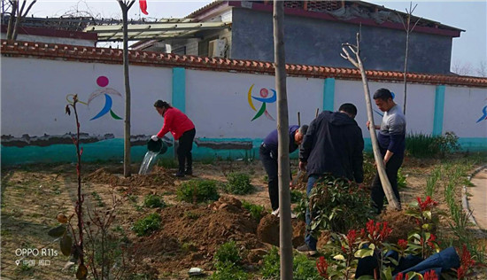 陽春三月,春風(fēng)吹綠了枝芽,吹綠了草地,櫻桃花、梨花爭(zhēng)相開放。植樹節(jié)前夕,西華縣蔣莊小學(xué)組織老師一邊戰(zhàn)疫情,一邊開展植樹造林活動(dòng),堅(jiān)持在疫情中為校園再添新綠。